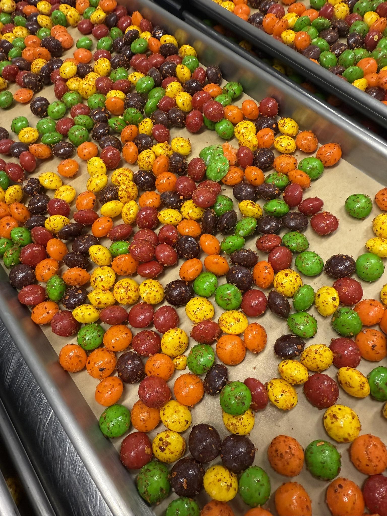 Sweet with a fun crunch in every bite. We have many flavors to choose from along with a couple of size options! These are made using skittles!